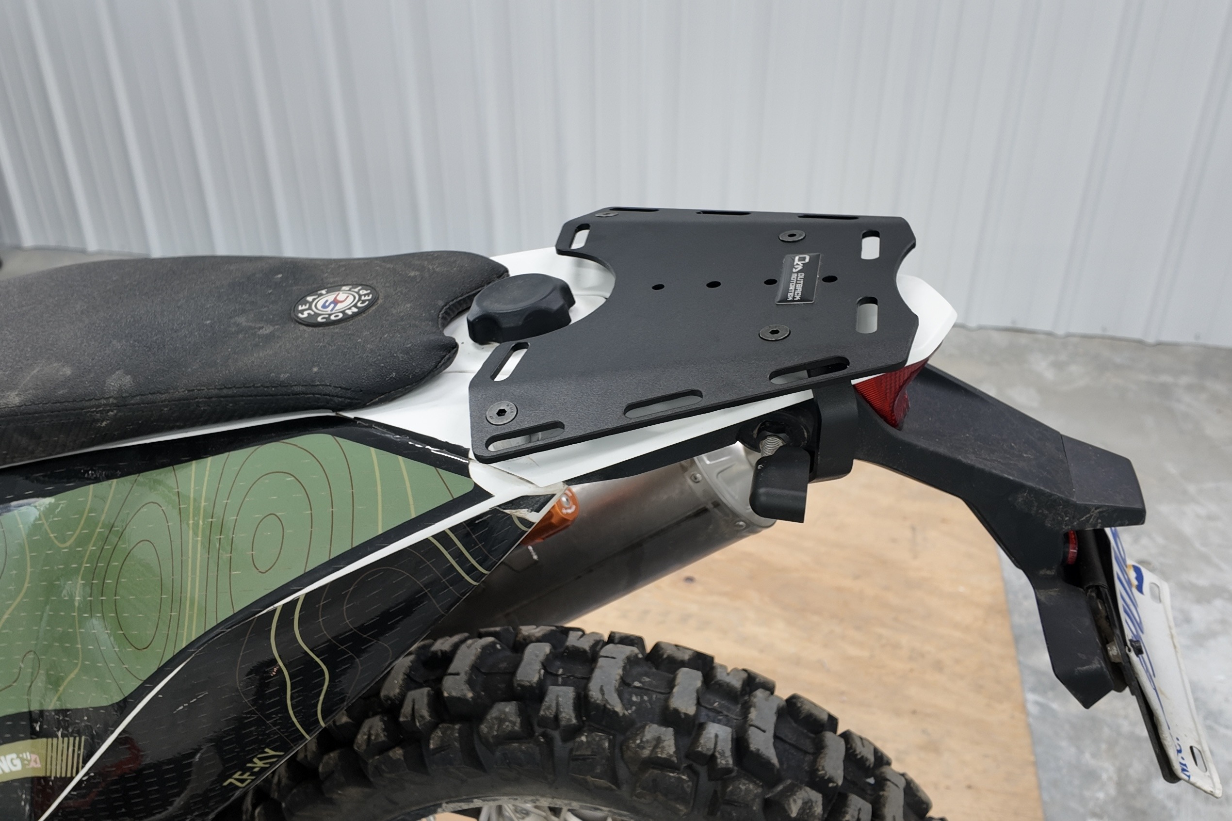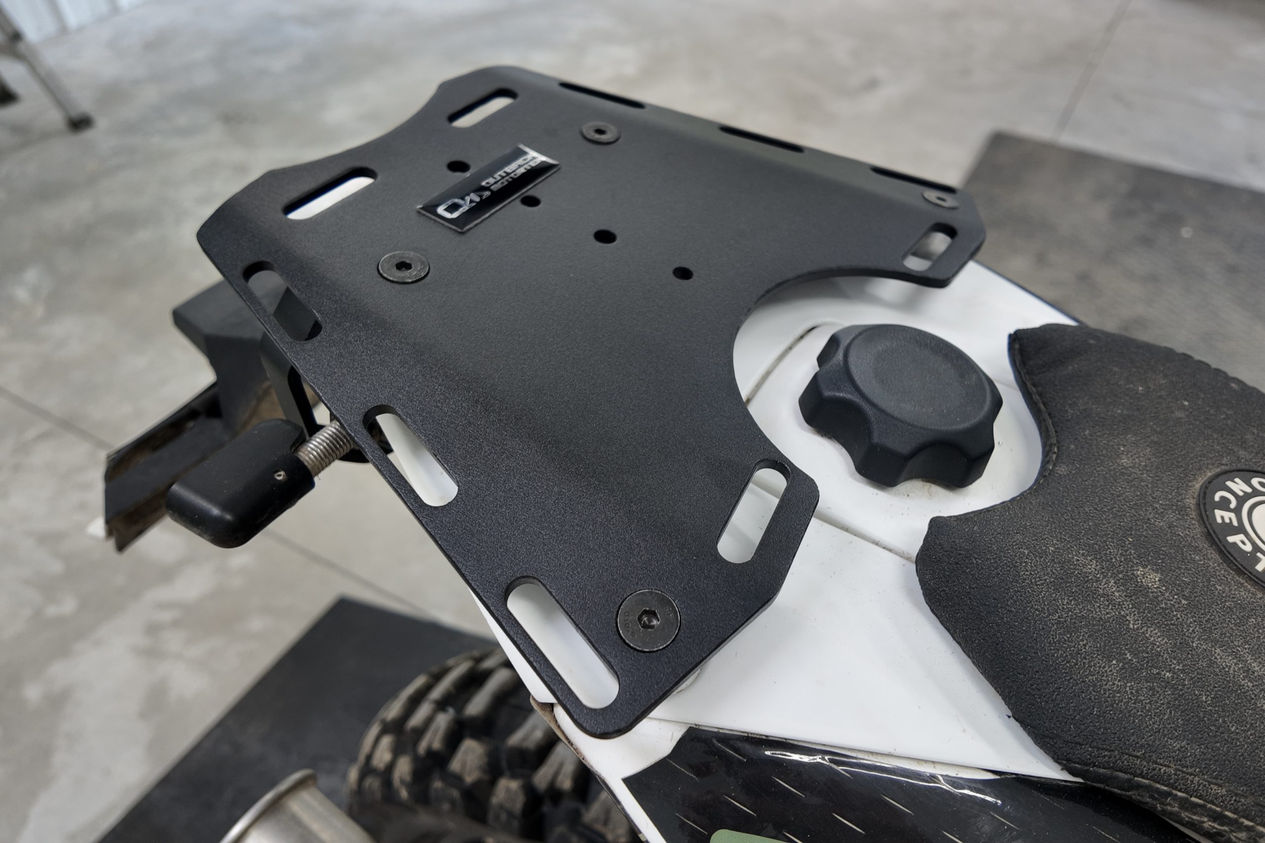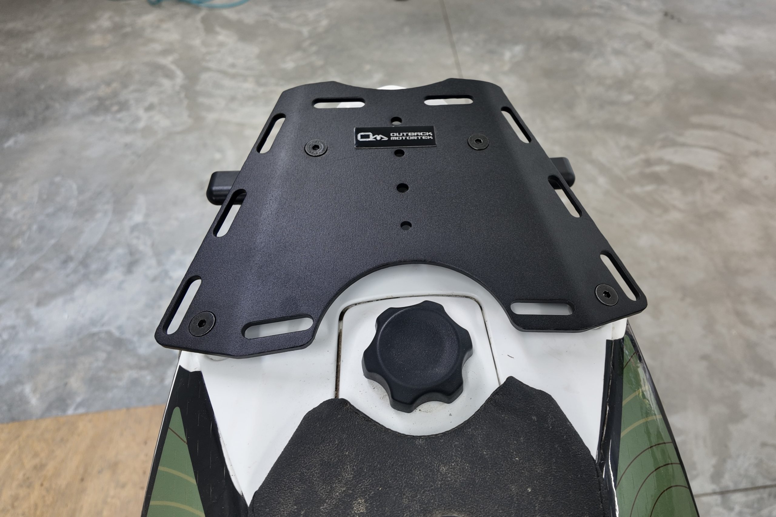 Outback Motortek ha diseñado un portaequipajes trasero para la Kove 450 Rally que es muy funcional. Hemos agregado orificios que son lo suficientemente grandes para técnicamente cualquier correa de sujeción o cincha para ayudar a asegurar una bolsa, tienda de campaña, etc.
